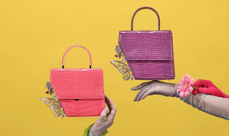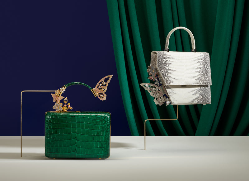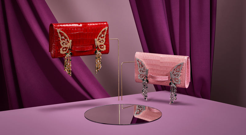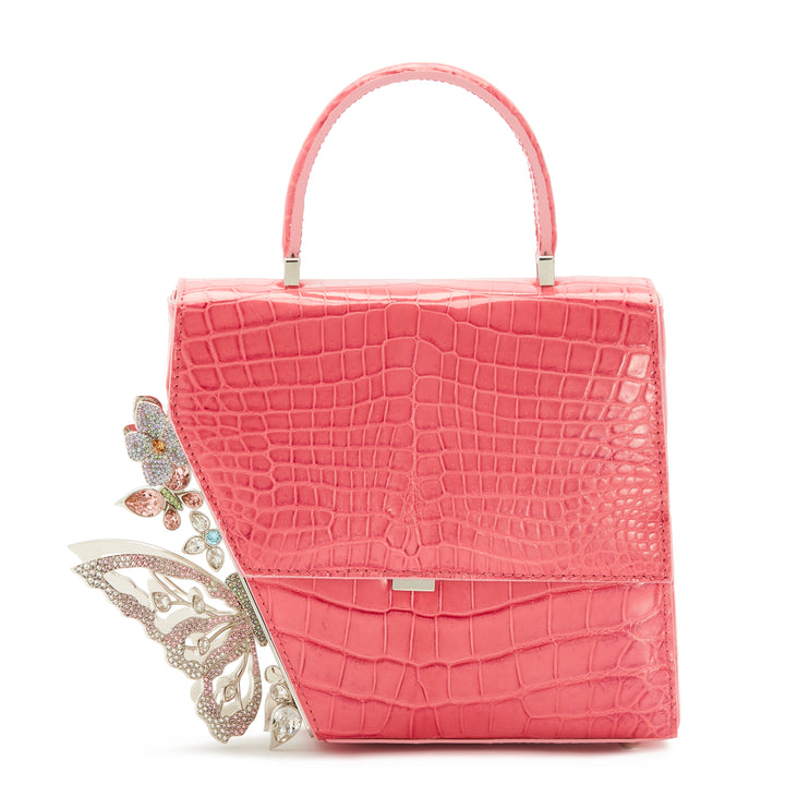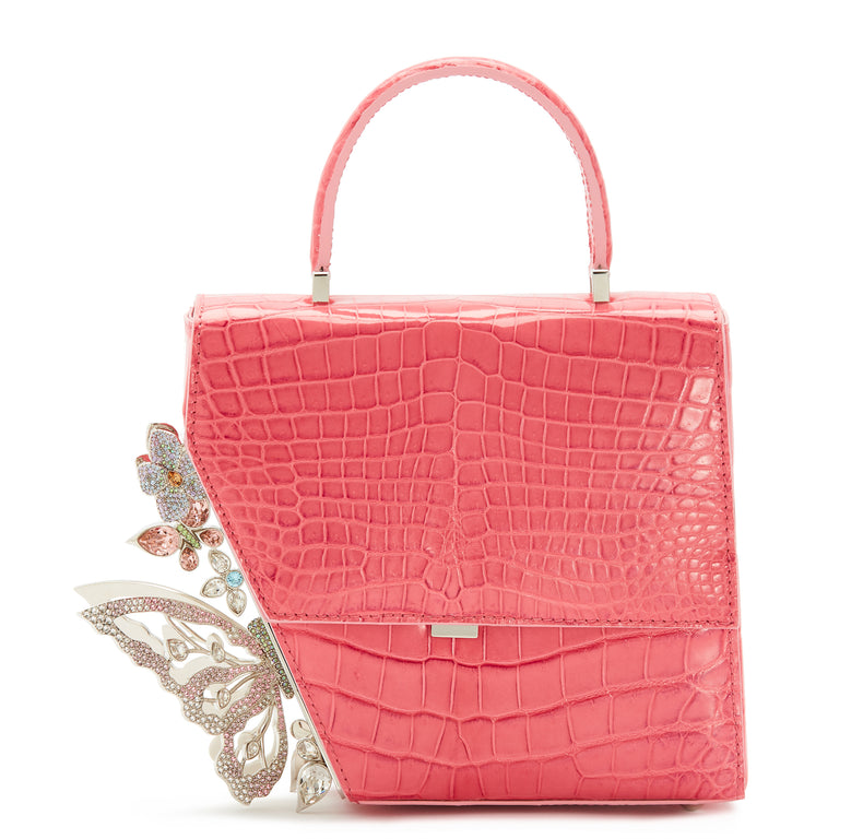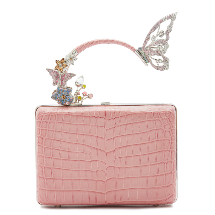 Price does not include VAT Created meticulously by Italy's top artisans, the Claudia bag has an asymmetric structure that features a cluster of crystalised butterflies and flowers on one side. Fits iPhone ProMax size perfectly. Made in Italy